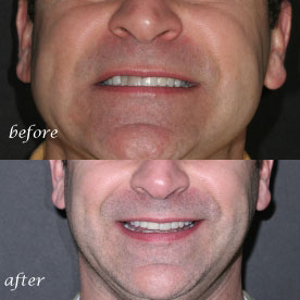 Tom D. of Brighton, NY came to Dr. Ricardo with 2 front teeth that were darkening due to a hockey accident as a teen. The teeth were infected and could not be restored. A considerable amount of bone loss made restoring the teeth a challenge.